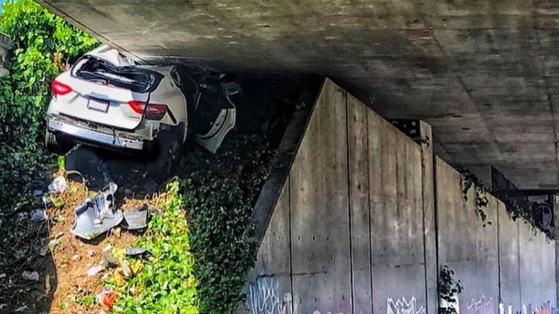 Policisti iz Oaklanda v ZDA so delili fotografije, ki so nastale po lovu na voznika belega maserati levanteja, ki je beg končal na spodnji strani avtocestnega nadvoza v Los Angelesu.