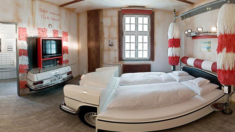 Če se boste odpravili v Stuttgart, se lahko ustavite v V8 hotelu, ki je opremljen s 34 sobami na temo avtomobilov. Najdražja soba na noč stane 380 evrov.