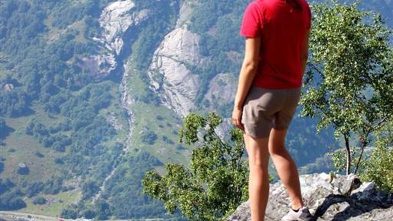 V okoliških hribih kar mrgoli pohodnih stez in razglednih točk. Do prve točke sva krenila kar peš, čeprav se da do tja pripeljati tudi z avtomobilom in od tam nadaljevati pot. Poti so glede na težavnostno stopnjo označene z različnimi barvami in oznakami, koliko minut hoje je do določenih postojank. Prvi cilj je bil razgled nad fjordom. Do tja vodi tri kilometre dolga pot, ki je polna turistov, ki se za en dan z avtobusi pripeljejo v Geiranger. Na poti sva srečala različne hribolazce, od Japonk v balerinkah do Američank v minikrilih, pa tudi ovce, koze in celo lame. Že z malo truda se je mogoče povzpeti 250 do 300 metrov nad fjord, od koder razgled seže daleč. Najbolj težavne poti vodijo tudi 1.500 metrov visoko, kjer je vse poletje sneg in led.