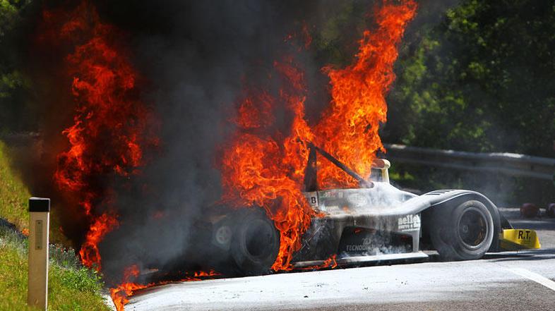 Na tradicionalni gorsko-hitrostni dirki v Ilirski Bistrici so gledalci videli slovaško zmago in v ogenj ujet prototip dirkalnika, iz katerega pa se je dirkač še pravočasno umaknil.