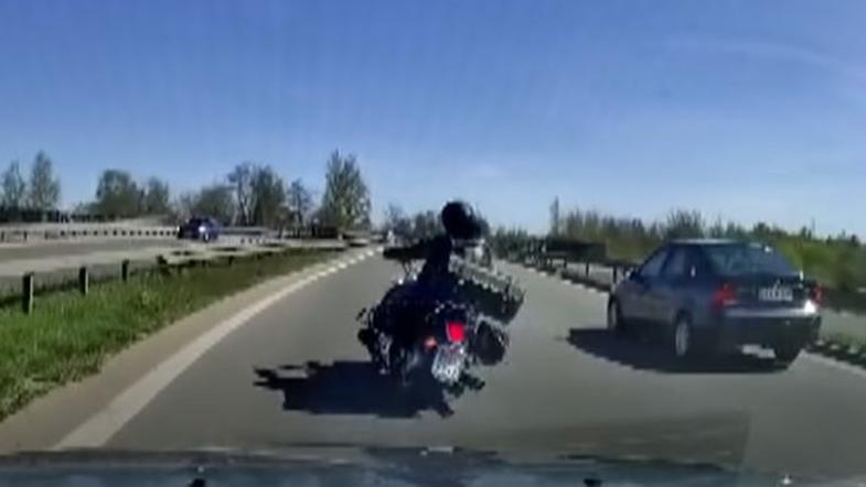 Poljska policija se je odločila, da bo video gradivo objavila kot opozorilo drugim motoristom. Video zapis prikazuje, kako je voznik motornega kolesa med vožnjo izgubil nadzor nad motociklom in trčil v pregrado ob cesti. Voznik in njegova sopotnica sta bila s hudimi poškodbami prepeljana v bolnišnico.