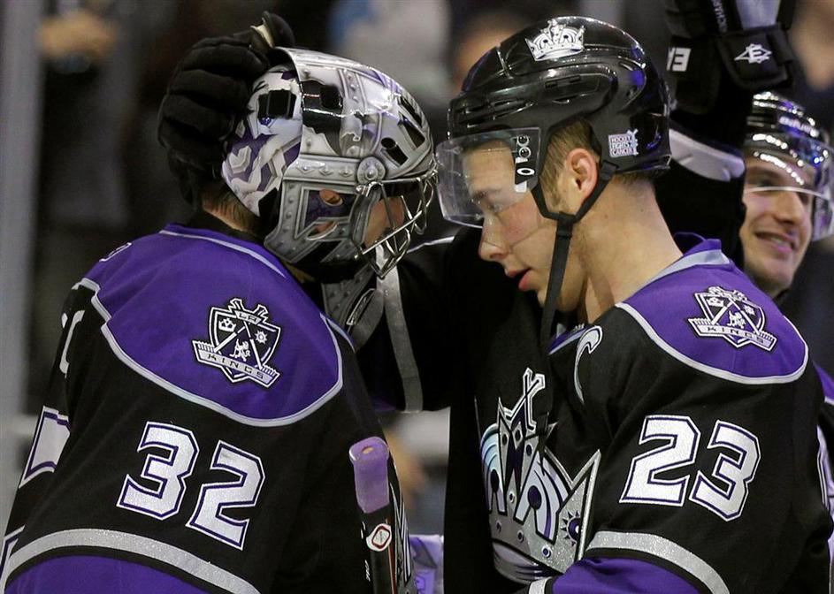 Jonathan Quick in Dustin Brown – vratar in dvakratni strelec za Kings. (Foto: Re