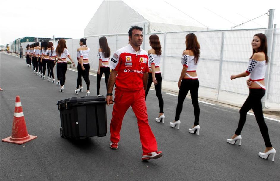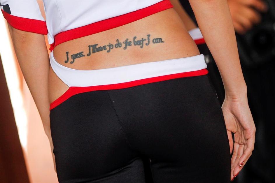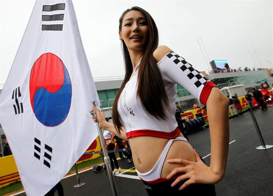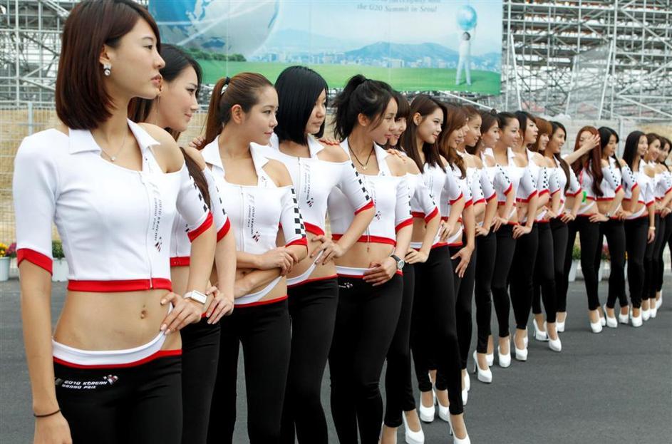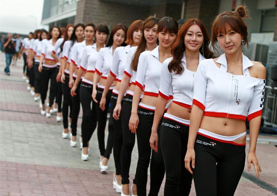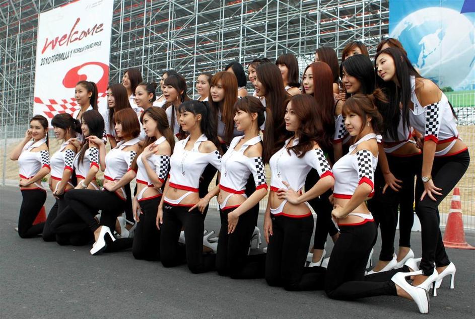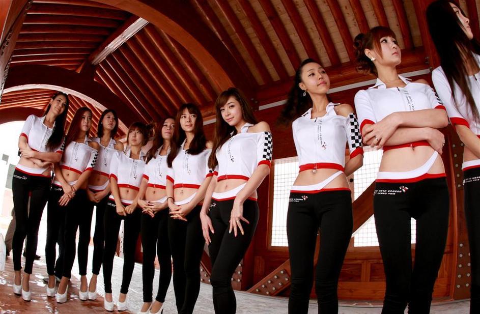 Na startu so hostese zmočile svoje seksi trebuščke. /Za ogled večjih fotografij le kliknite na to./