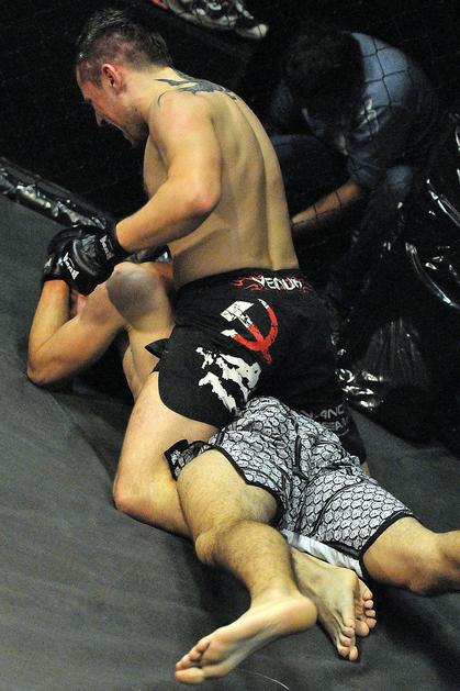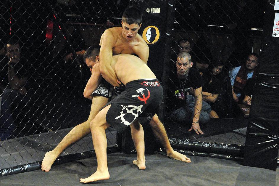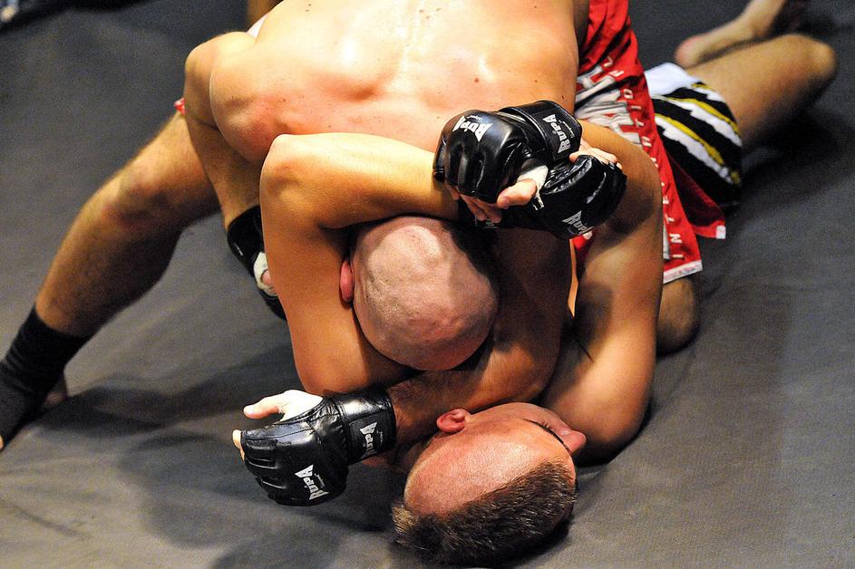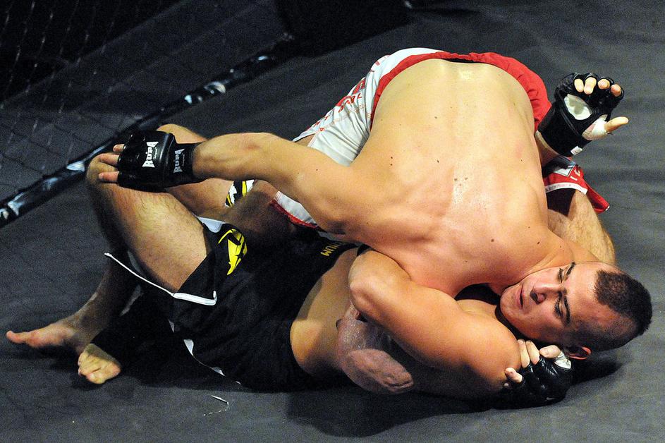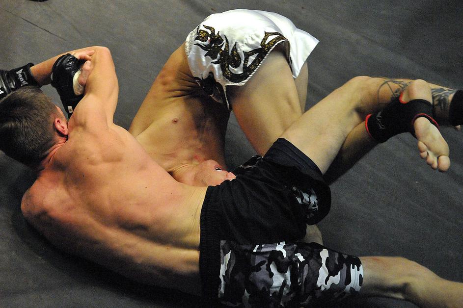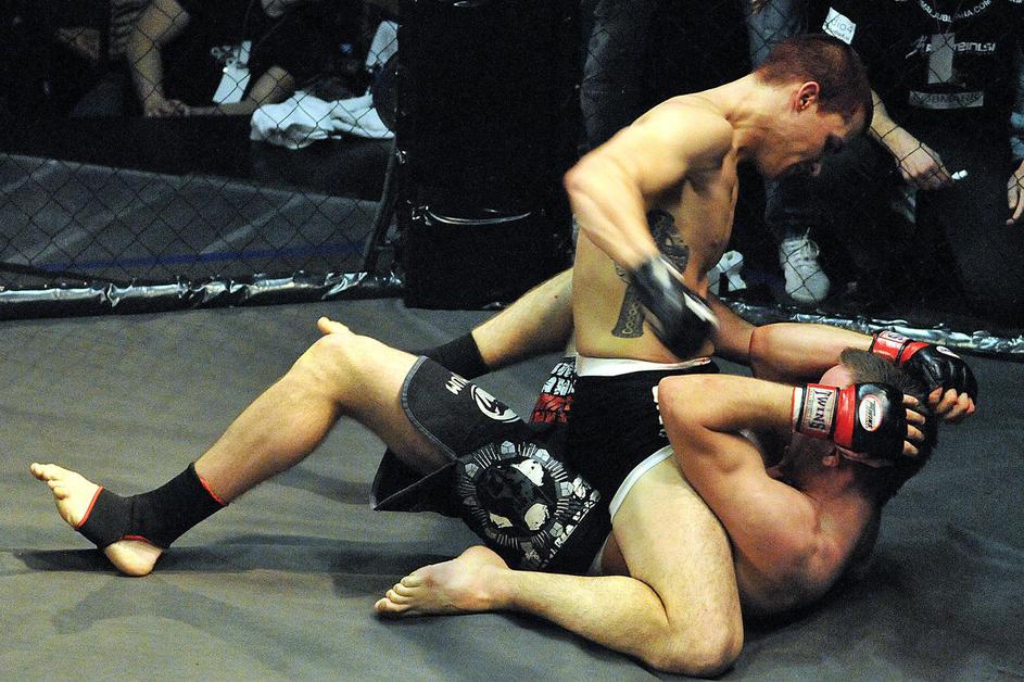 Anže Egart (zgoraj) je z arm barom že v prvi rundi premagal Jerneja Gajška.