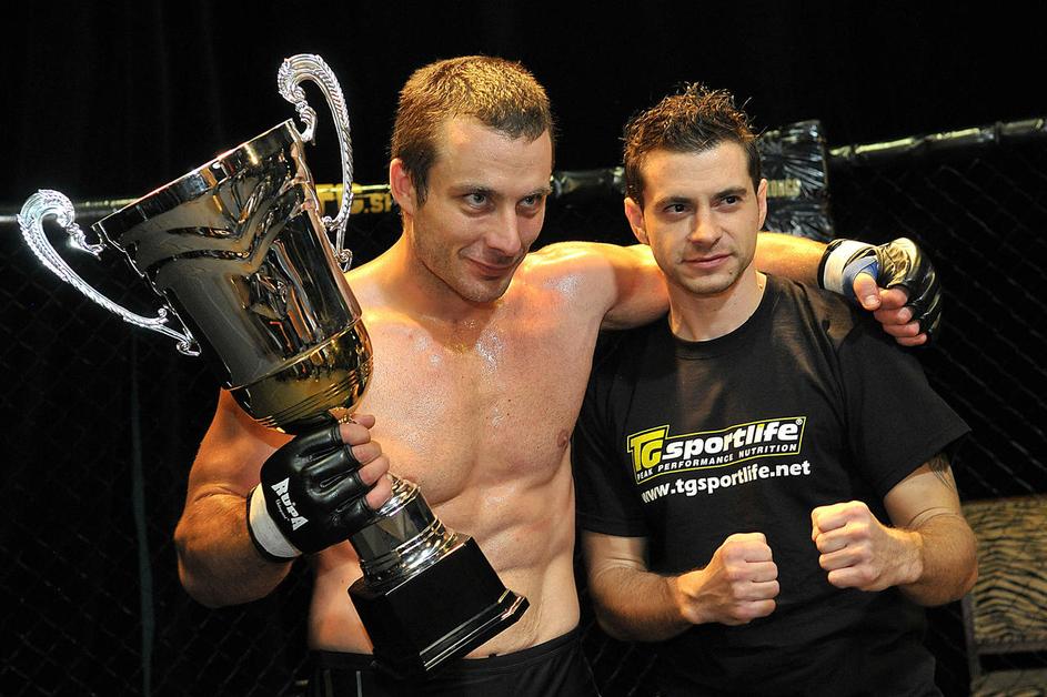 Miha Perovšek je po zmagi na Danijelo Grabarjem najprej sprejel čestitke svojega trenerja Utroše.