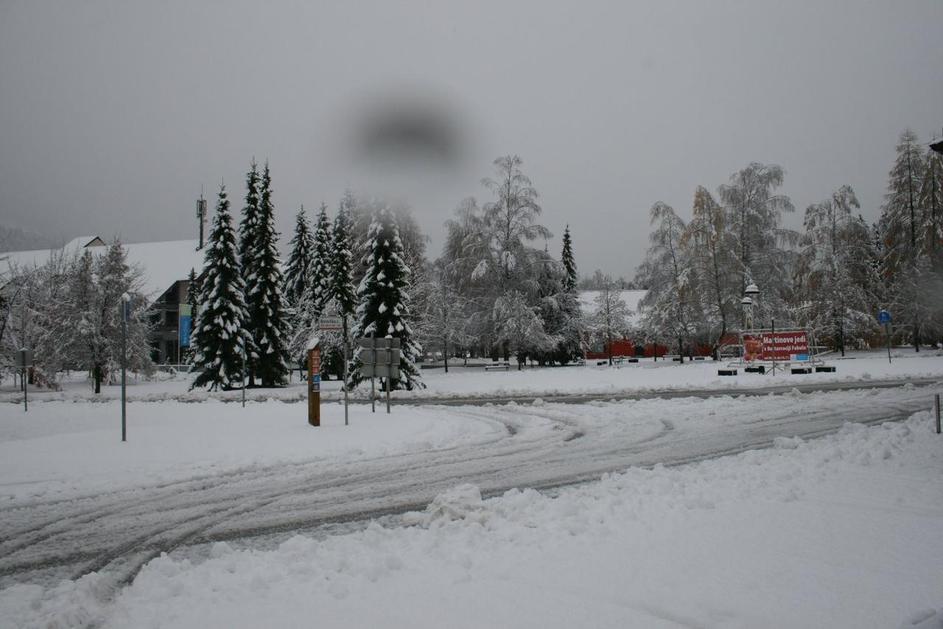 Razmere na cestah na območju Kranjske Gore okoli poldneva.