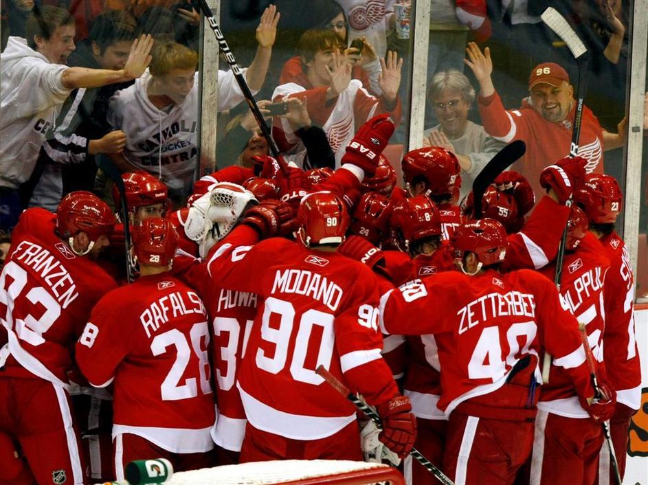 Veselje ob zmagi Red Wingsov.