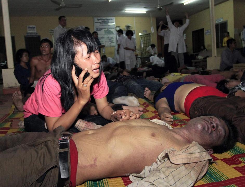 Tiskovni predstavnik vlade Khieu Kanharith je zatrdil, da naj bi bilo ranjenih 400 ljudi.
