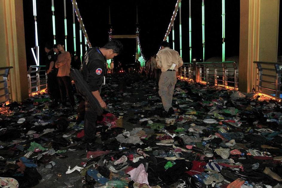 To je povzročilo prerivanje na mostu na reki Tonle Sap, ki vodi do otočka. Most je postal prenatrpan