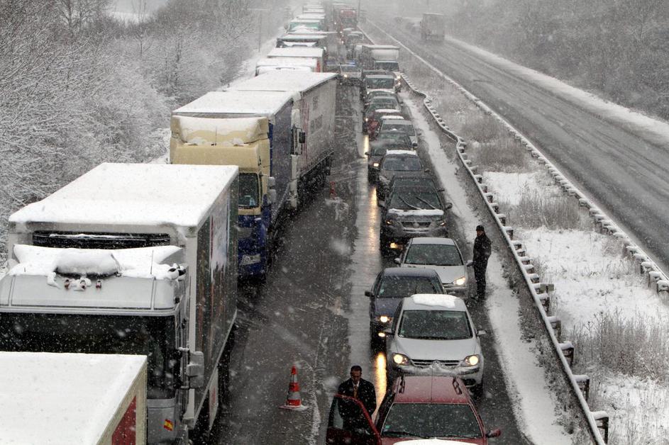 Na jugu Anglije je 400 tovornjakov obtičalo na poledeneli avtocesti.
