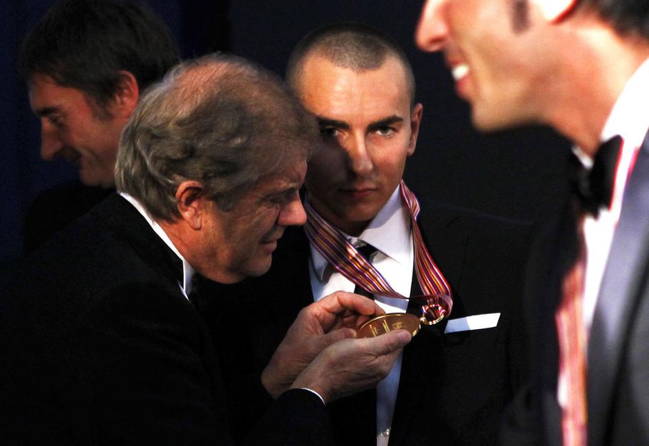 Na Portugalskem je bil tudi legendarni Giacomo Agostini, ki je preveril pristnos Lorenzove kolajne.