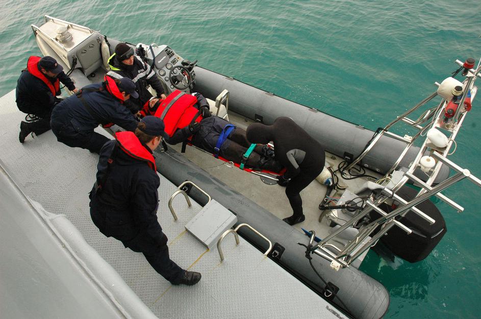 Ko so pogrešanega imobilizirali, so ga s čolnom (na ladji sta dva) odpeljali v medicinsko oskrbo na