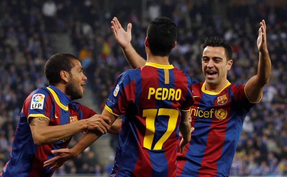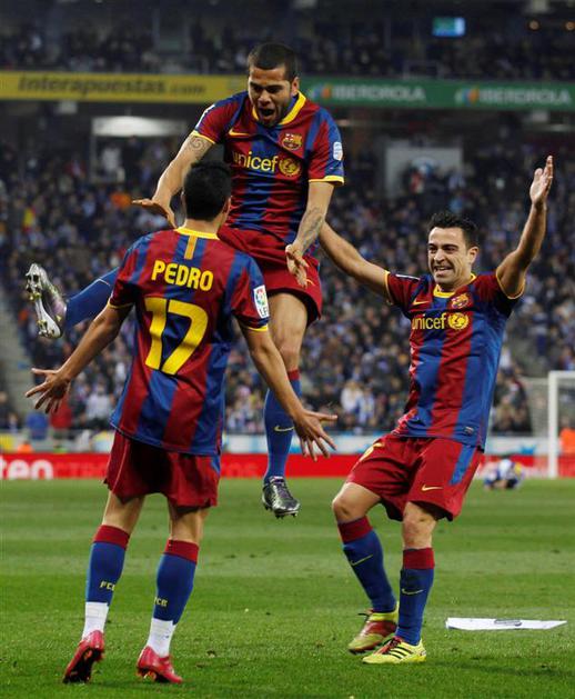 Xavi Hernandez Daniel Dani Alves Pedro Rodriguez gol zadetek veselje proslavljanje slavje proslava