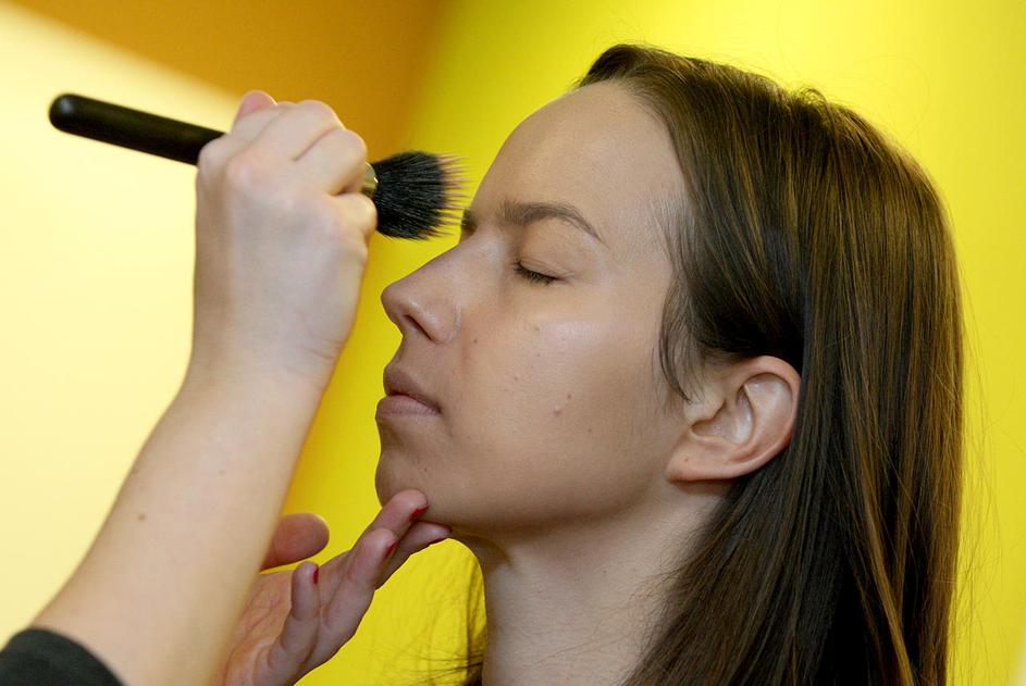Po nanosu pudra in korektorja vse skupaj utrdite s pudrom v prahu. S tem dosežete mat videz.