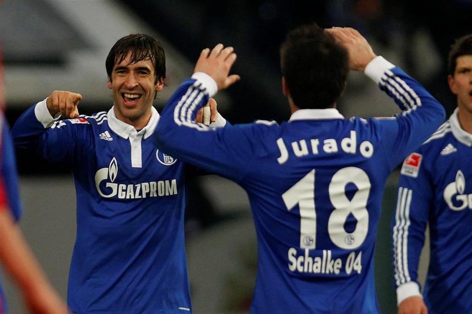(Schalke 04 - 1. FC Köln) Raúl González proslavlja svoj vodilni zadetek.