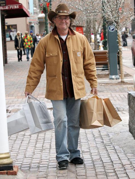 Igralec Kurt Russel med nakupi v Aspenu.