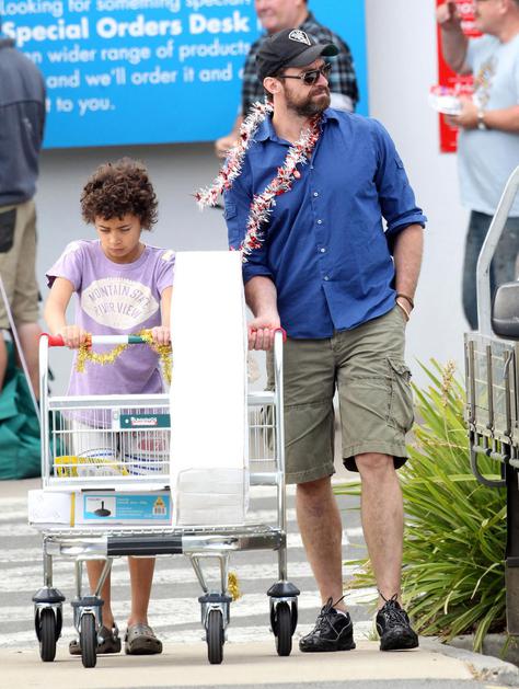 Igralec Hugh Jackman s sinom Oscarjem in hčerko Avo med nakupi v Melbournu.