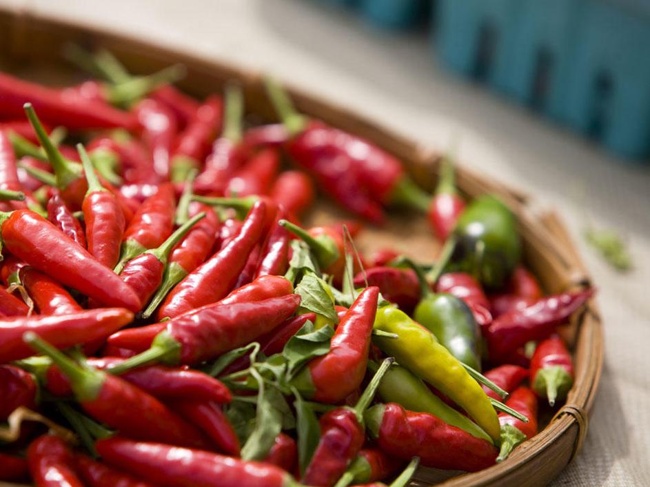 Začinjena, pekoča hrana. Kajenski poper, čiliji jalapeño in habanero so morda užitek za brbončice, n