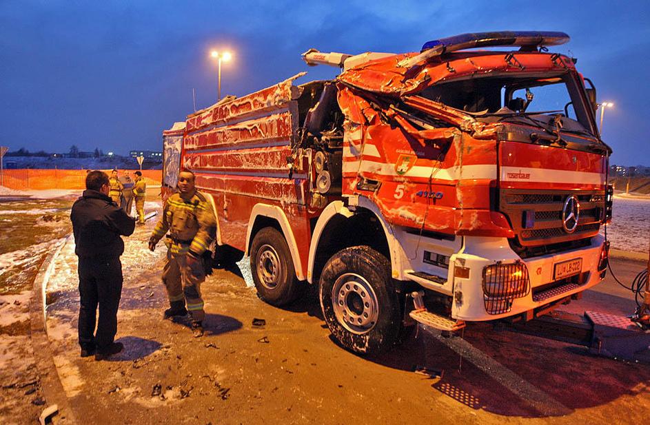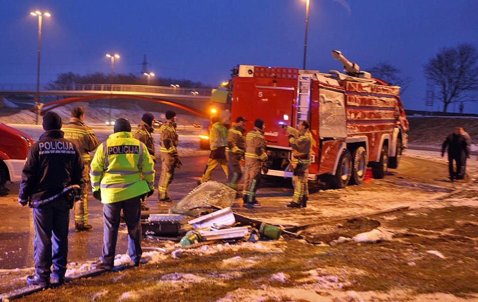 LJ: prevrnilo se je gasilsko vozilo