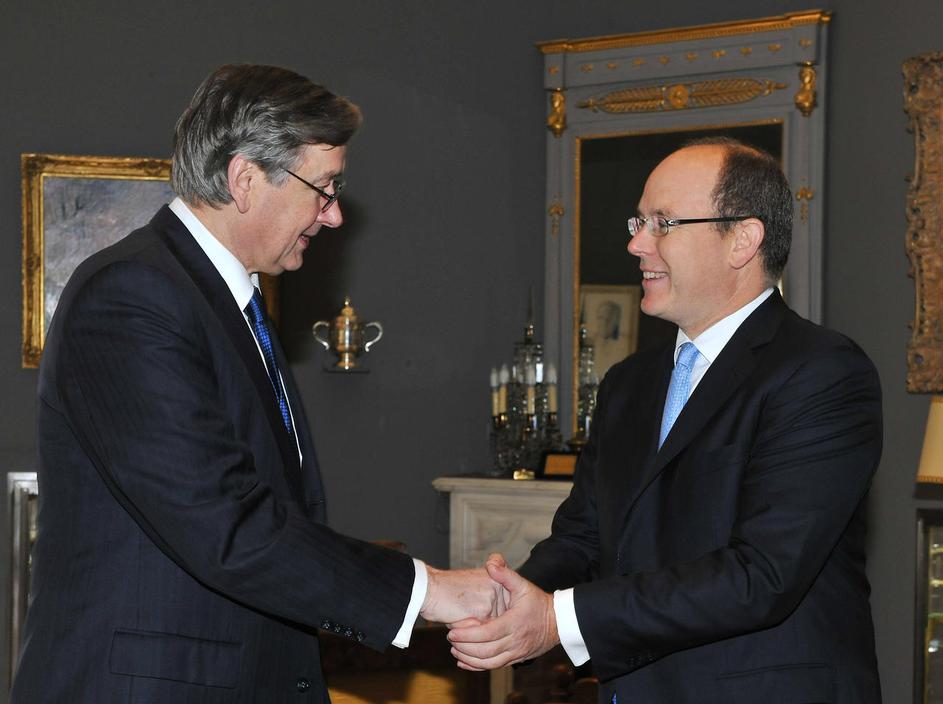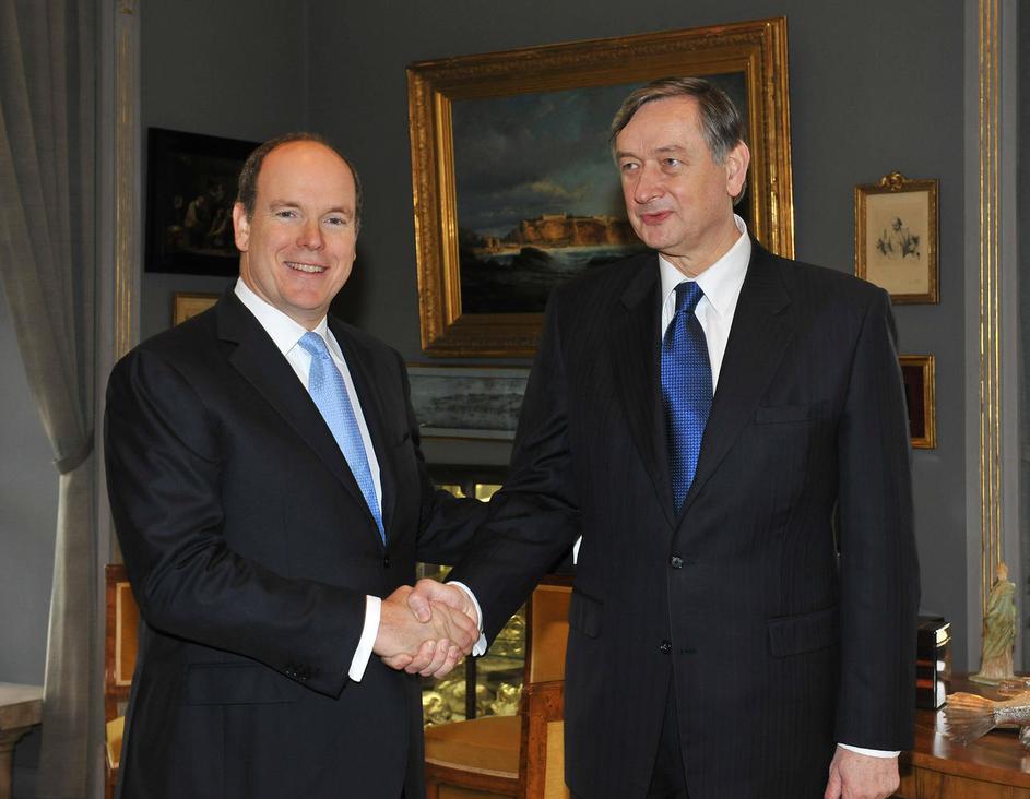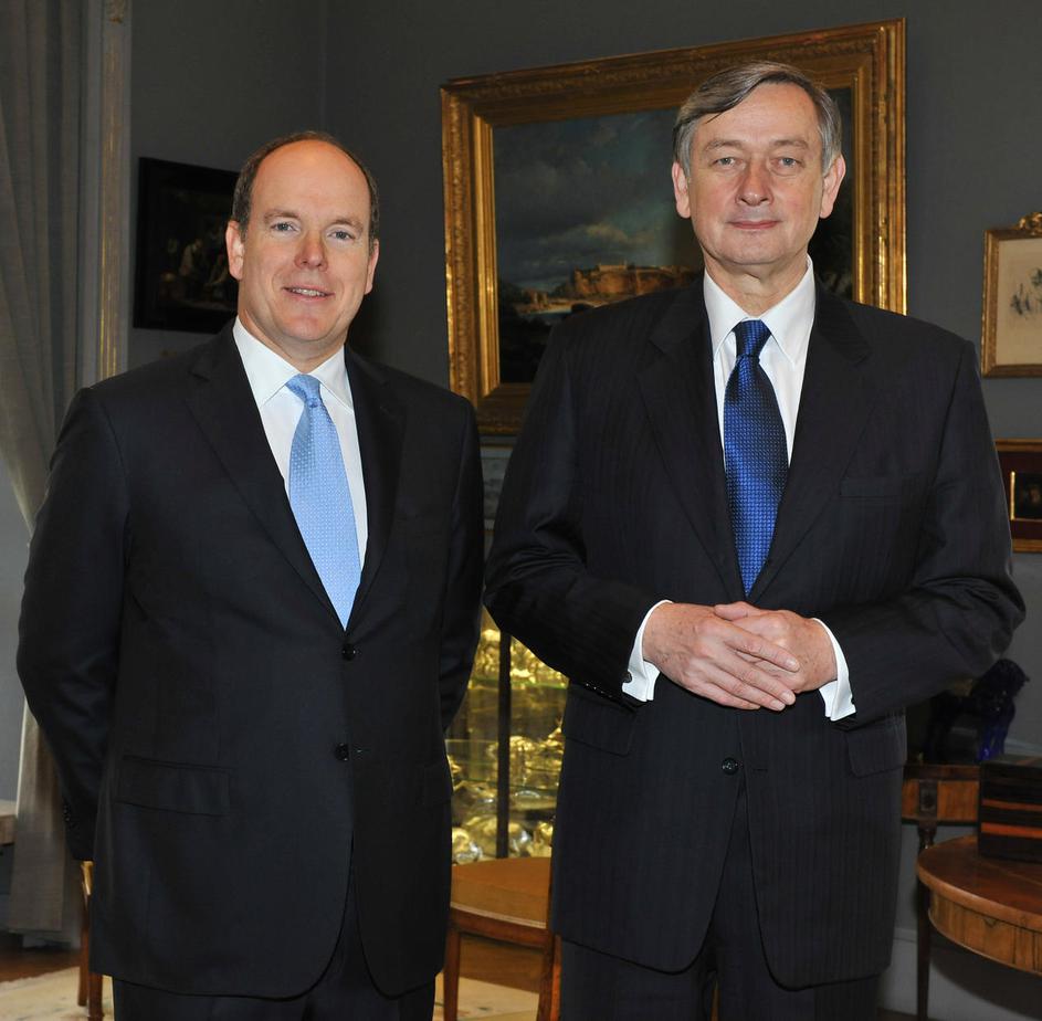 Po uradnem sprejemu z vojaškimi častmi sta se slovenski predsednik in monaški knez zadržala v pogovo
