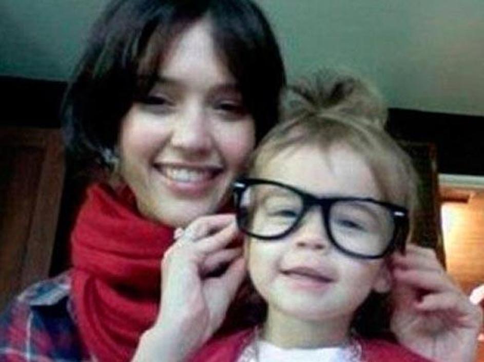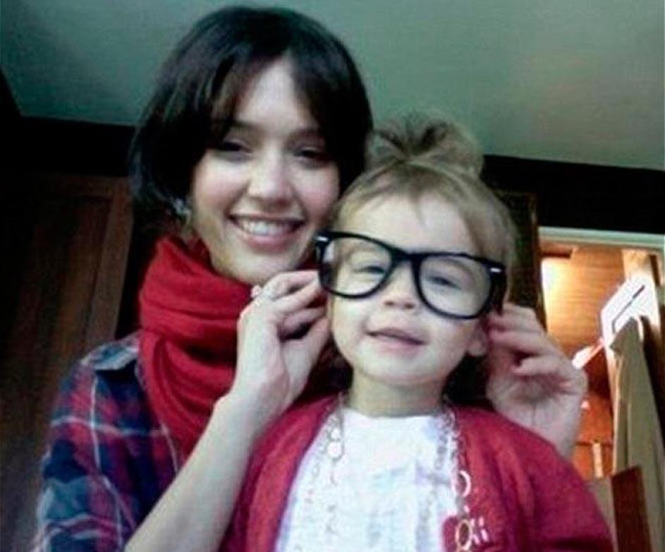 Hčerka Jessice Albe si je sposodila mamina očala za twitter fotografiranje.