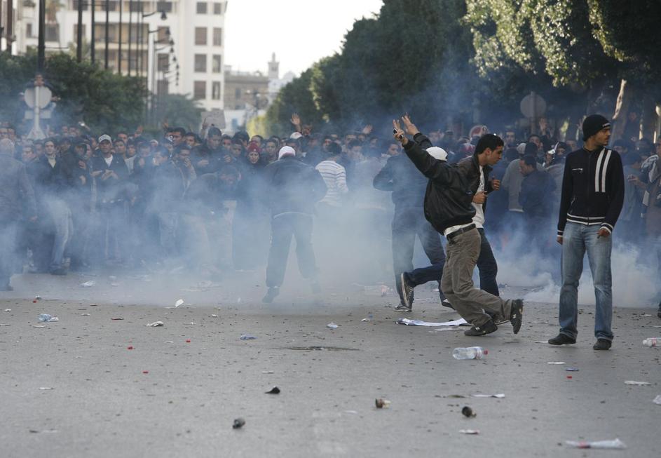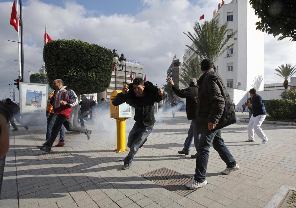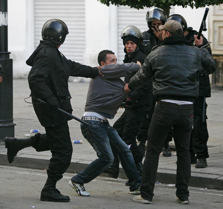 Napad protestnikov na mimoidočega med demonstracijami oktobra 2010 v Parizu.