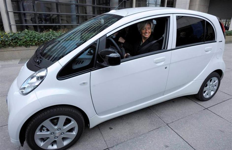 Francoska finančna ministrica Christine Lagarde se je v Parizu popeljala s povsem električnim avtomo