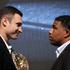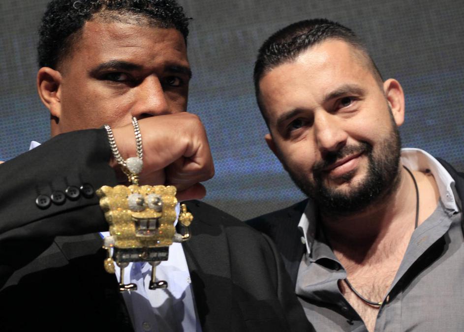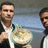 Kličko in Solis sta takole pozirala v Kölnu na prvi uradni tiskovni konferenci slaba dva meseca pred