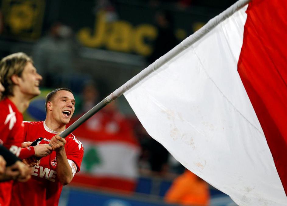 Lukas Podolski je mahal z zastavo ...
