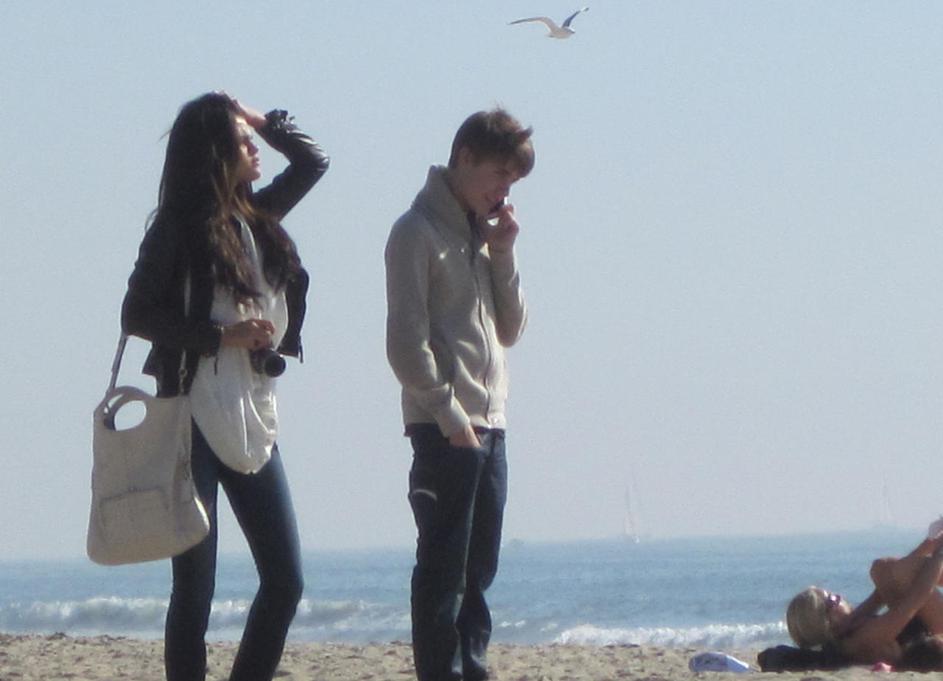 Justin Bieber, Selena Gomez, plaža, romantika, Santa Monica