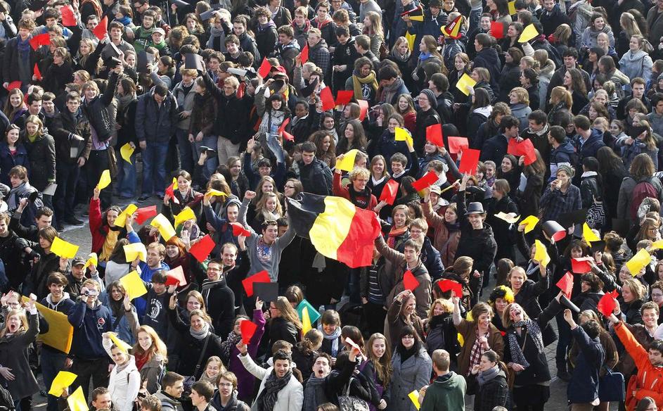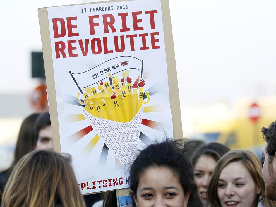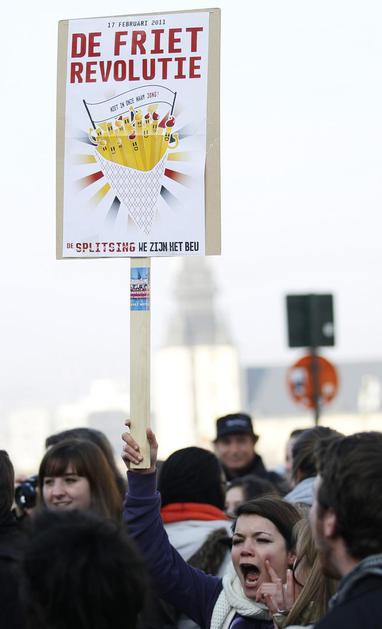 Protesti proti maratonski politični krizi v Belgiji ali "revolucija ocvrtega krompirčka", po vzoru j