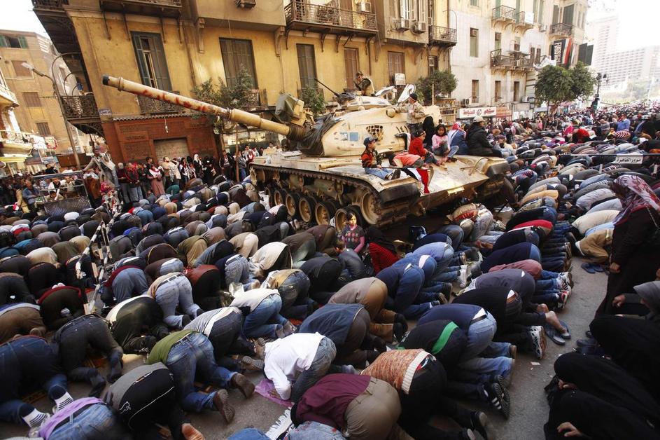 Kljub veselemu in prazničnemu ozračju so osrednji kairski trg obkrožali tanki in vojska, ki so preve
