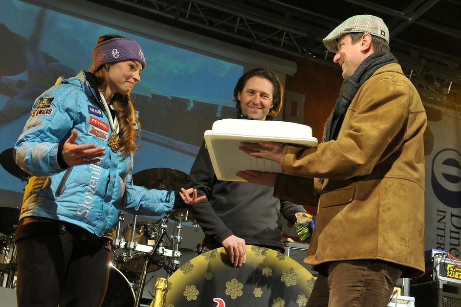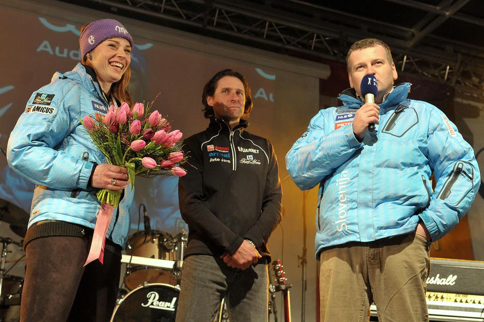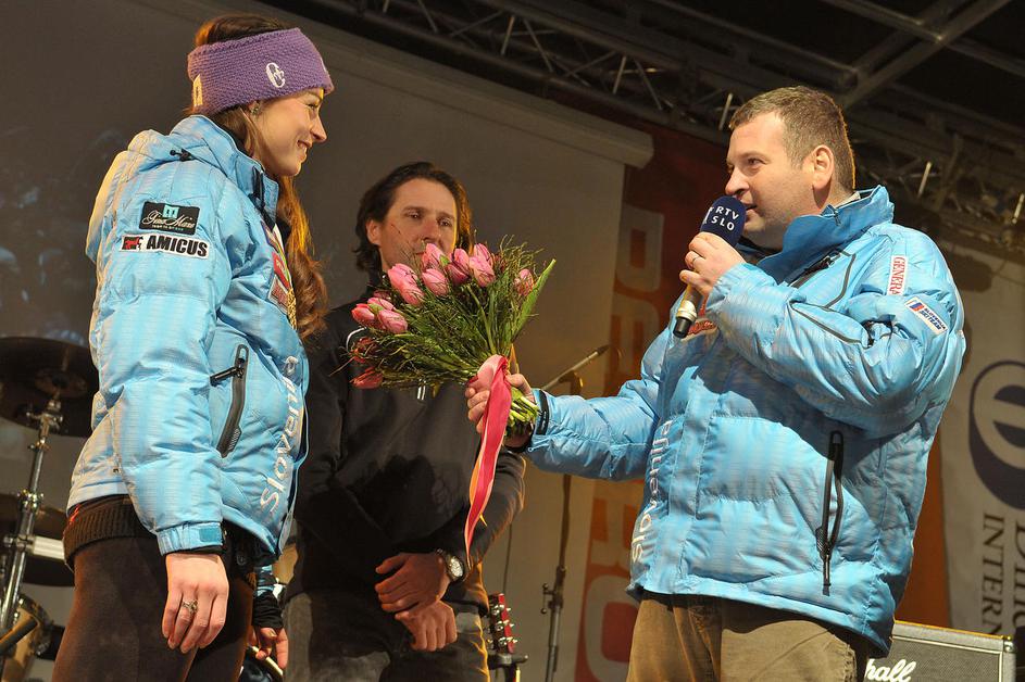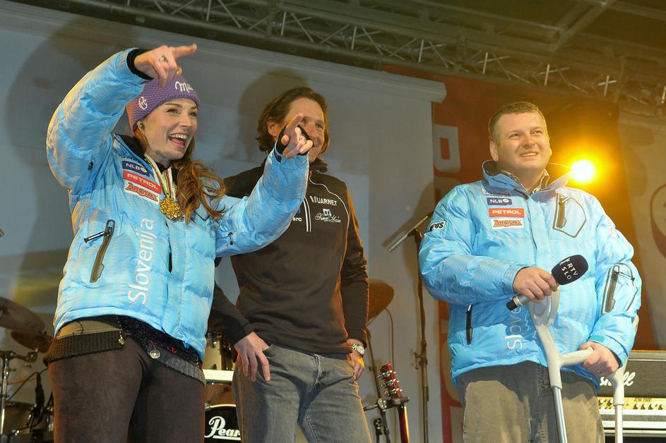 Nasmejena Tina Maze na odru Prešernovega trga. (Foto: Anže Petkovšek)