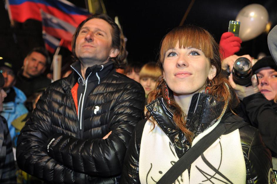 Tina Maze na sprejemu na Prešernovem trgu, kjer je po Massijevih besedah očitno