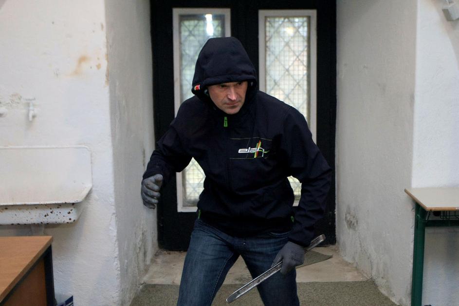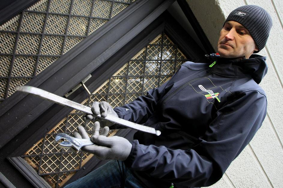 Z železno palico nato po potrebi še sprosti vrata. Vse skupaj traja nekaj sekund.