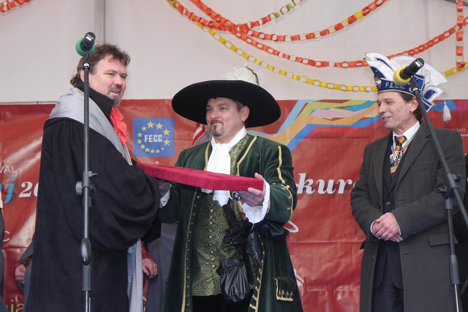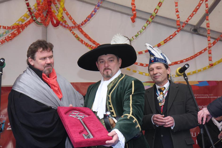Župan Štefan Čelan je predal oblast letošnjemu princu karnevala Janezu Golcu.