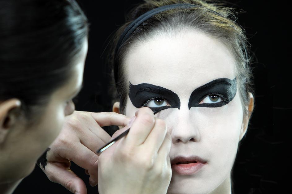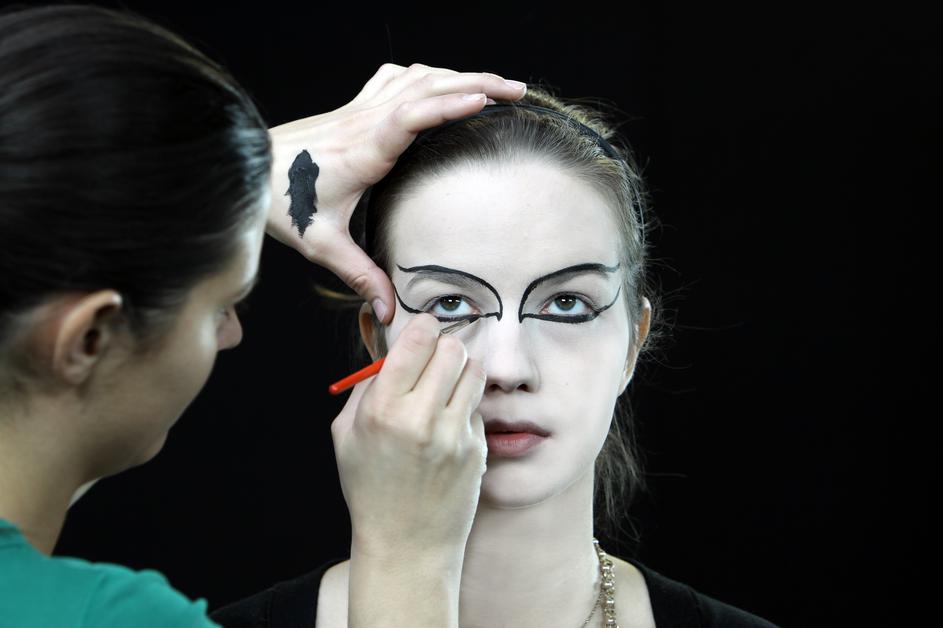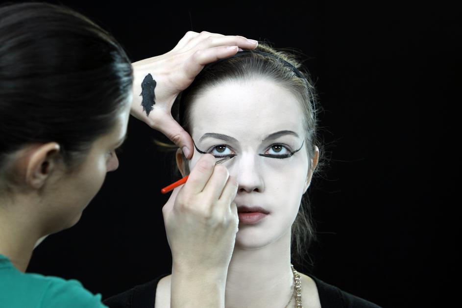 Obroba: Ličenje začnite pri očeh. Uporabite črtalo za oči ali črno barvico iz pustnega seta. "Spodnj