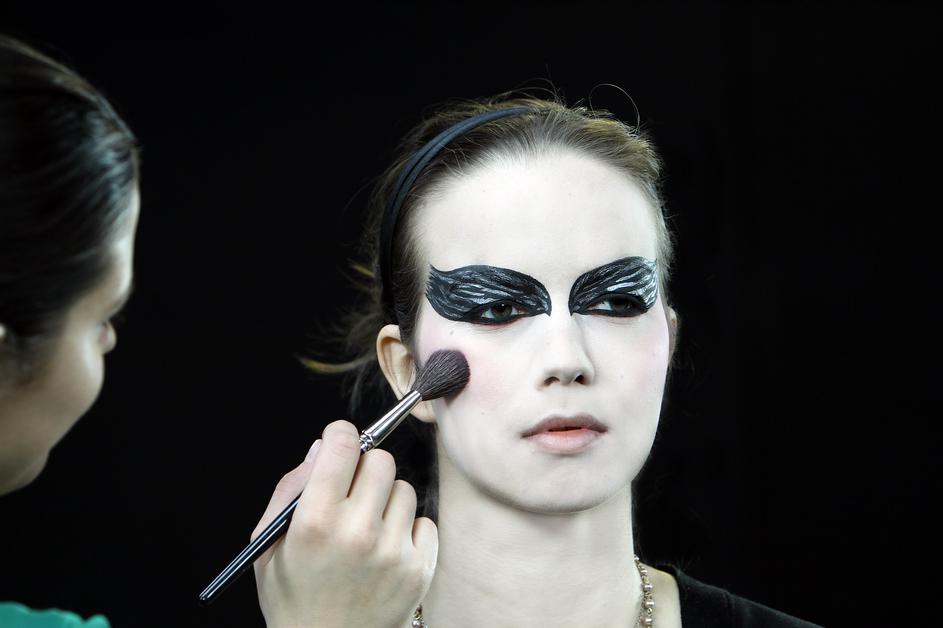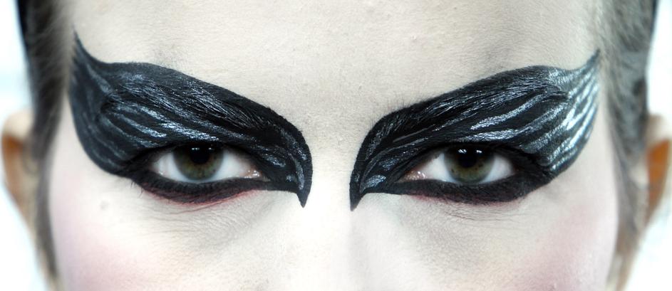 Detajli: Črnini okrog oči dodajte svetle bleščice, da dobite bleščeč videz perja. "Bleščice nanesite