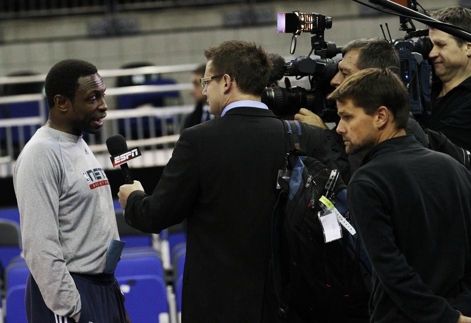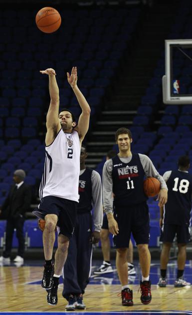 Deron Williams in njegovi novi soigralci na treningu v londonski O2 Areni.