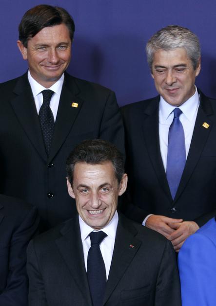 Boris Pahor ob Nicolasu Sarkozyju in Joseju Socratesu. Je imel portugalski premier v odstopu kakšen