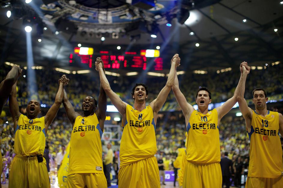 Košarkarji Maccabija so štirikratni evropski klubski prvaki. (Foto: EPA) MACCABI TEL AVIV : Caja Laboral 99:77 /3:1/ Žurnal24 Košarkarji Maccabija so štirikratni evropski klubski prvaki. (Foto: EPA)