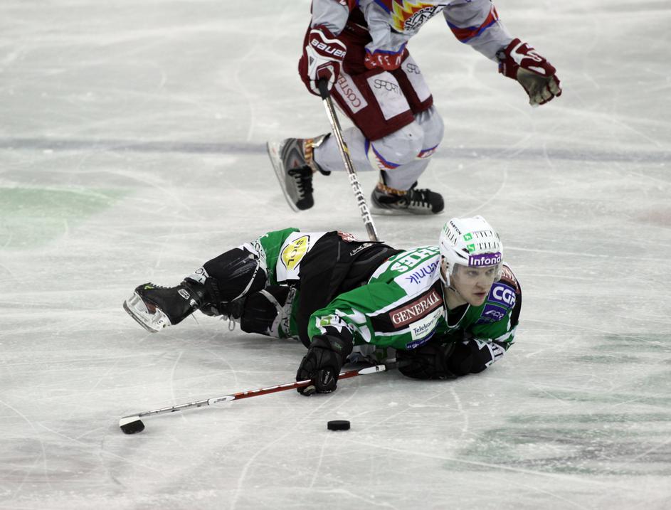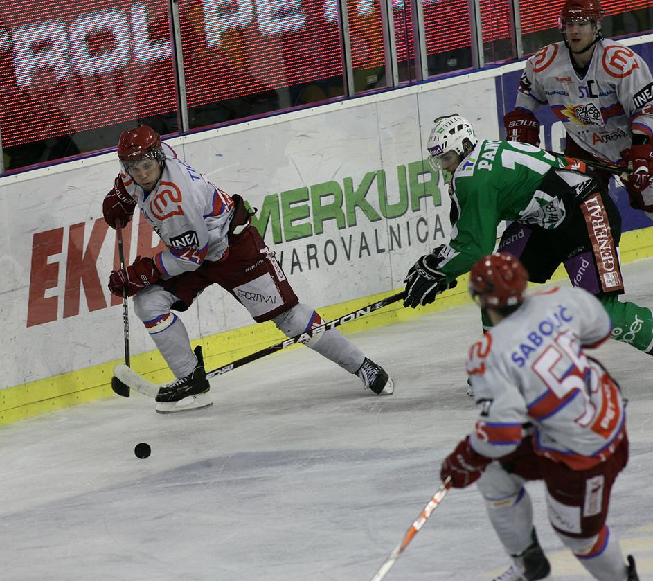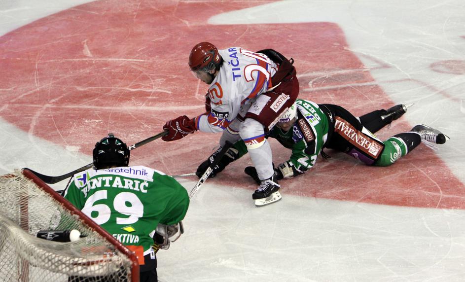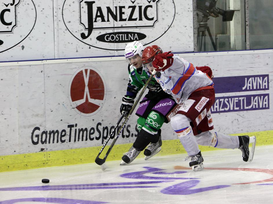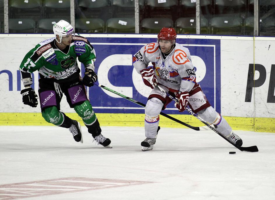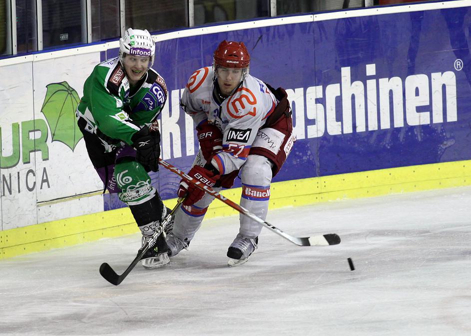 V prvi minuti podaljška je Marc Cavosie dal svoj drugi gol na tekmi in Acroni Jesenice so prvo tekmo