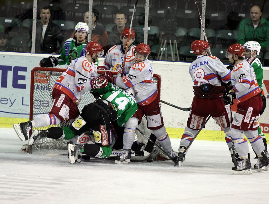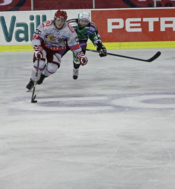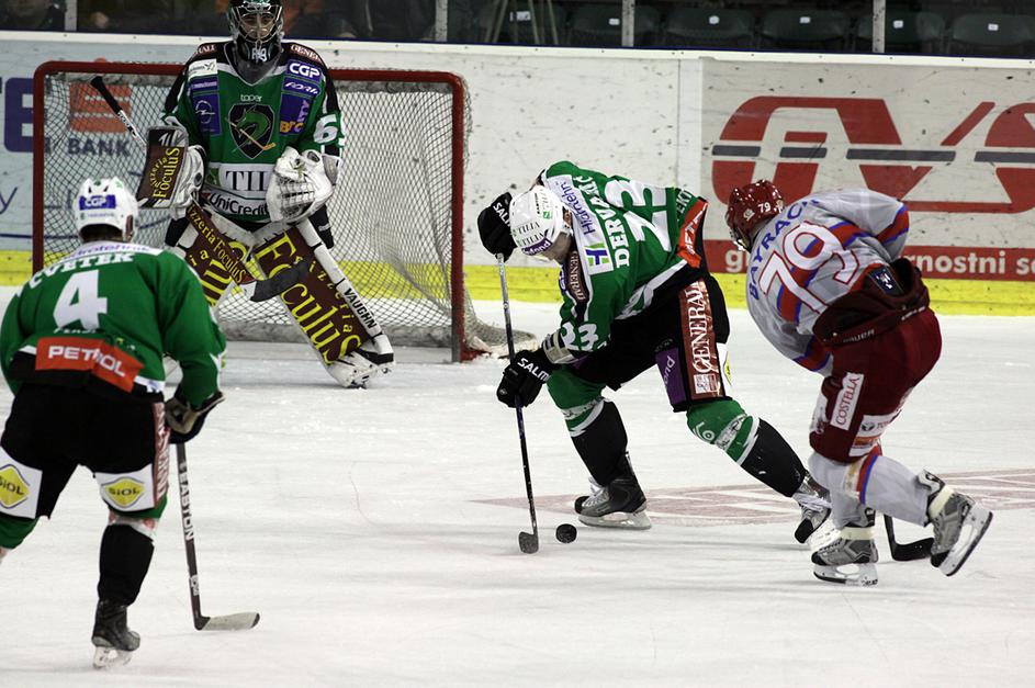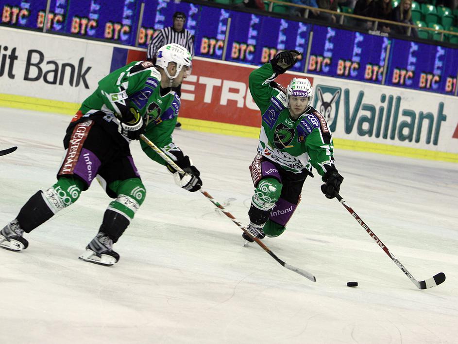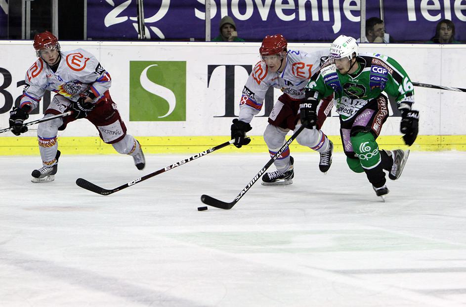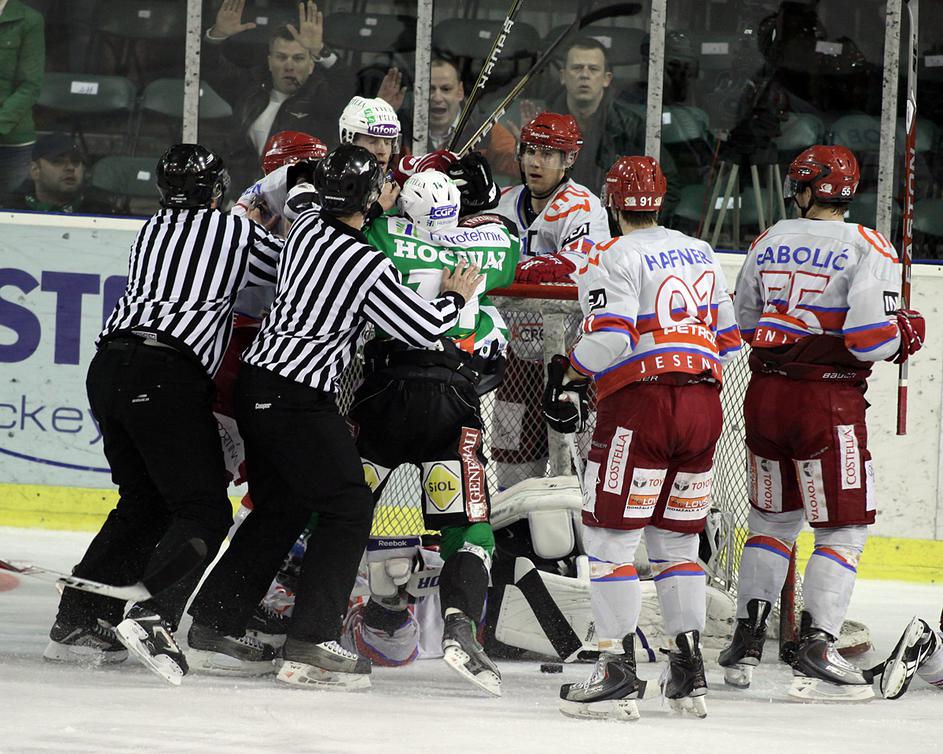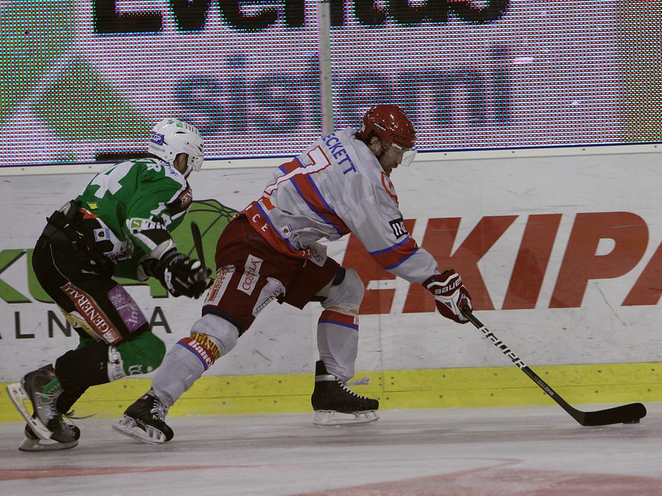 V prvi minuti podaljška je Marc Cavosie dal svoj drugi gol na tekmi in Acroni Jesenice so prvo tekmo