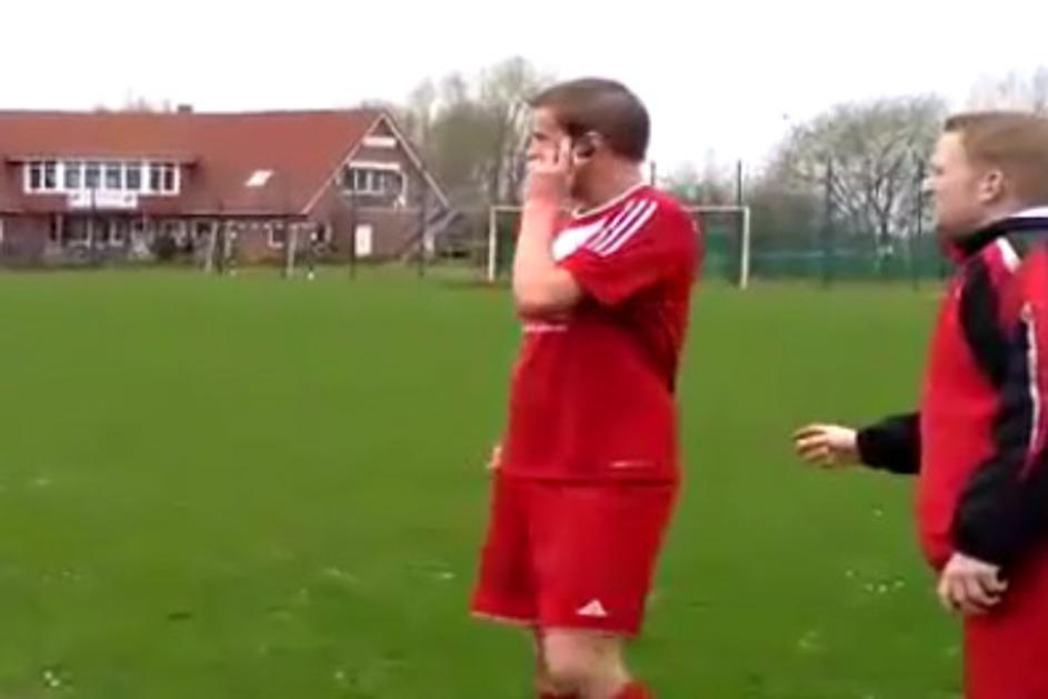 Igral tekmo in klepetal po telefonu