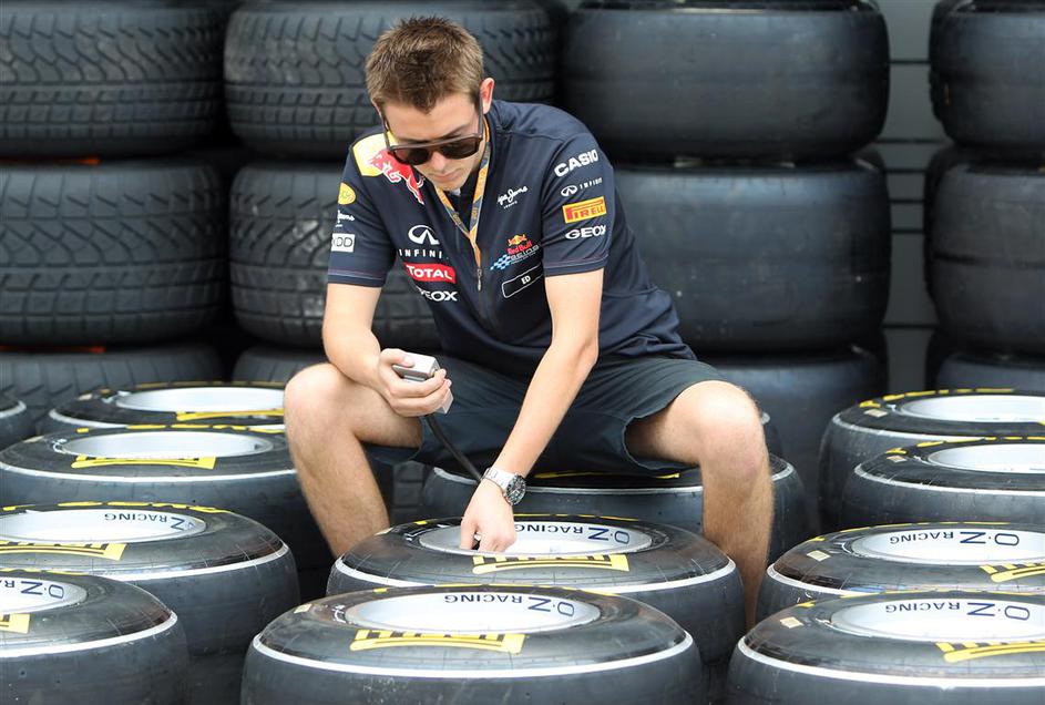 mehanik pripravlja Pirellijeve pnevmatike