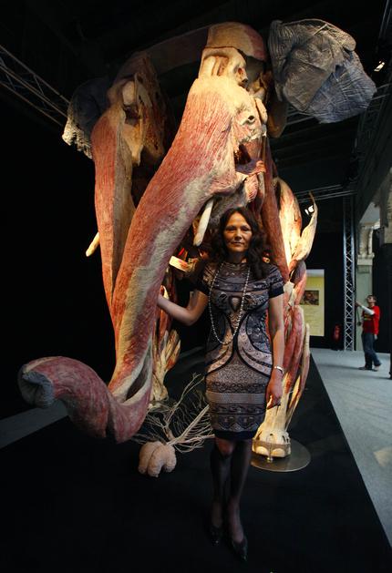 Mišičasta gorila v objemu žene 66-letnega umetnika Angeline.