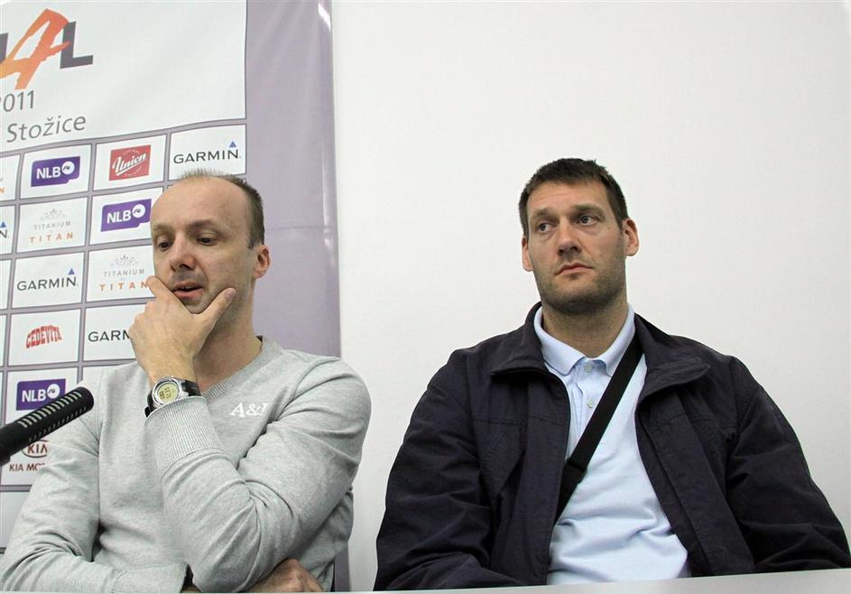 Iz oči v oči – tekmeci za naslov prvaka lige NLB na ponedeljkovi novinarski konferenci.