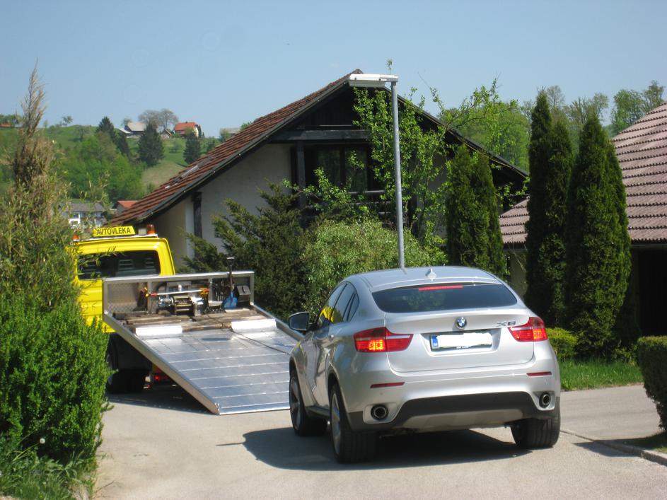 Da se nekaj dogaja, pa je pokazal prihod avtovleke AMZS. Šofer je povedal, da je prišel iskat BMW-ja