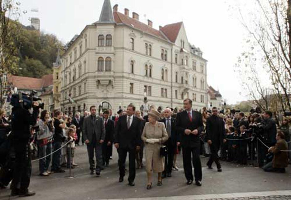 Med obiskom si je kraljica ogledala Ljubljanski grad in se sprehodila čez Tromostovje. Obiskala je t