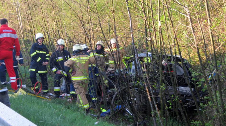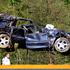Vozilo se je na razdalji več kot 25 metrov večkrat prevrnilo in nato obstalo v regulacijskem potoku.